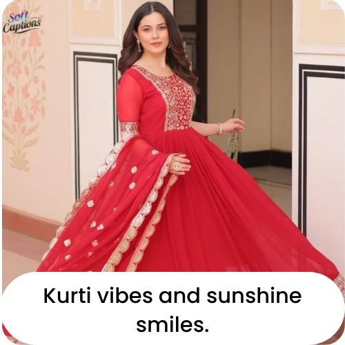 A Kurti caption isn’t just a few fancy words; it’s the rhythm of heritage stitched with confidence, the poetry of elegance flowing through every fold, and the sparkle of timeless beauty that never fades. Whether it’s a breezy cotton Kurti for sunny days, a festive silk shimmer, or a casual chic look that turns heads — the right caption captures the essence of feeling beautifully you.