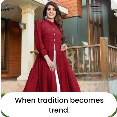 In a world chasing trends, a Kurti Caption reminds us that true fashion isn’t about blending in — it’s about standing tall in your roots, glowing with grace, and letting every thread tell your story. ✨